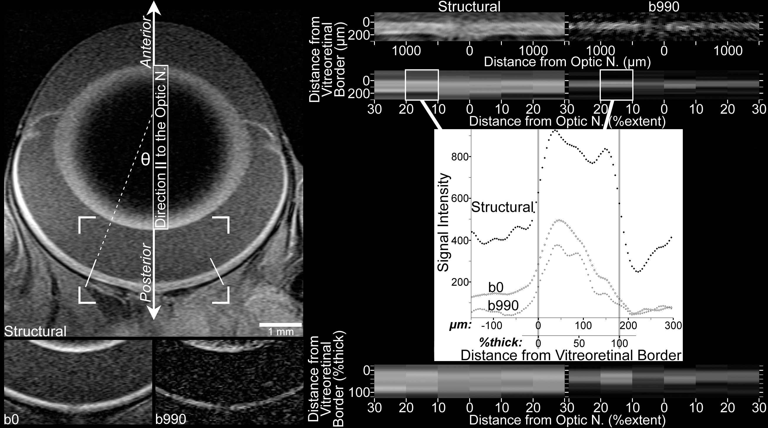 parallel to the optic nerve (ADC║) that include structures (e.g., photoreceptors) oriented off-║ by ≤θ, this should have negligible