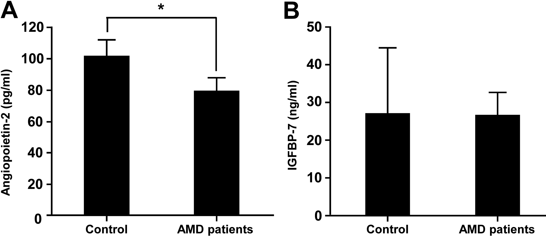 Enzyme-linked immunosorbent assay (ELISA) data of Ang-2 and IGFBP-7. The protein levels of Ang-2 (