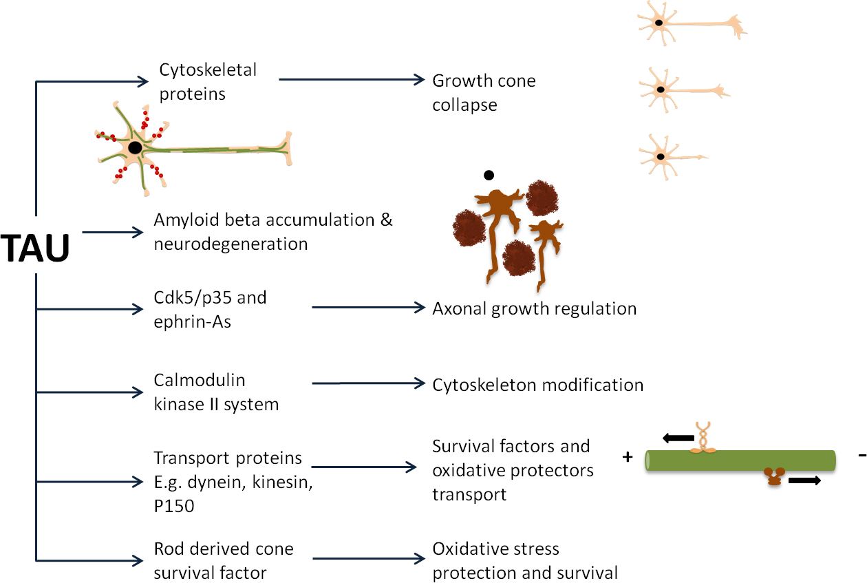 Figure 1. Schematic diagram summarizing the roles of tau in retinal functions. Tau can stabilize microtubules. Any distortion of tau