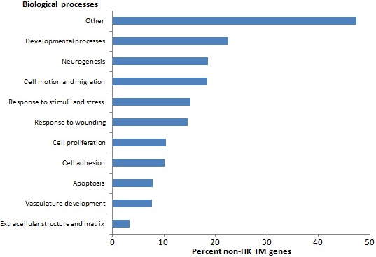 Percent of non-HK TM expressed genes enriched in related gene ontology biologic processes.