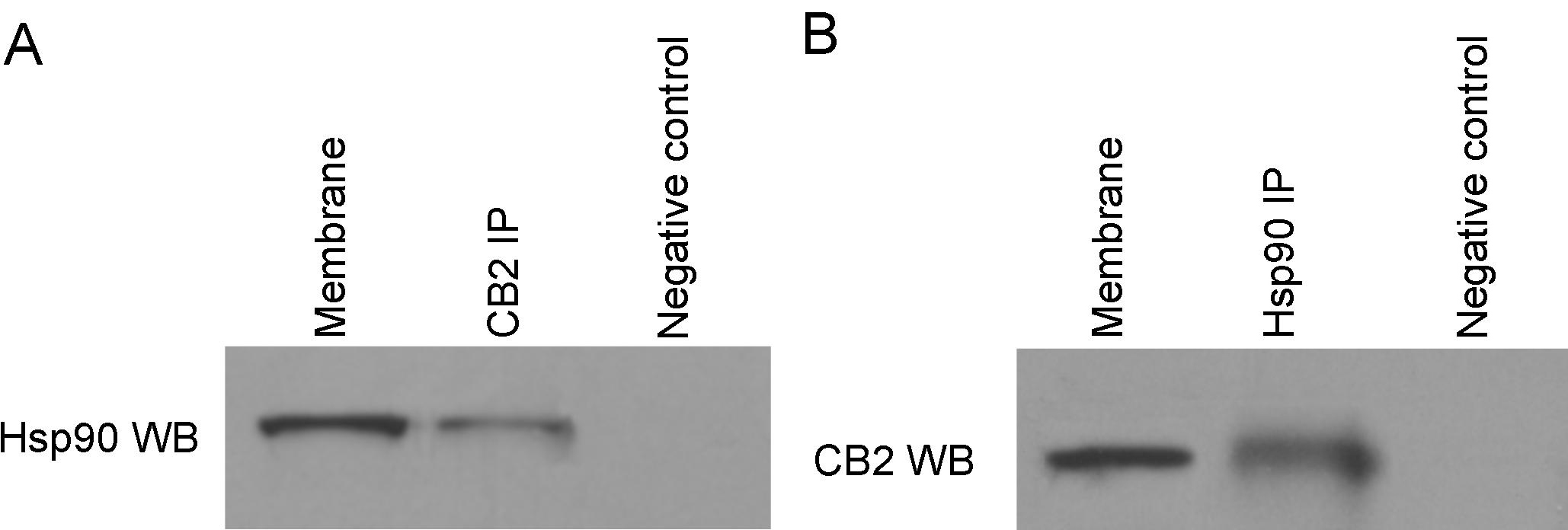 with similar results. Hsp90 was coimmunoprecipitated by the anti-CB2 antibody, whereas the CB2 receptor was coimmunoprecipitated