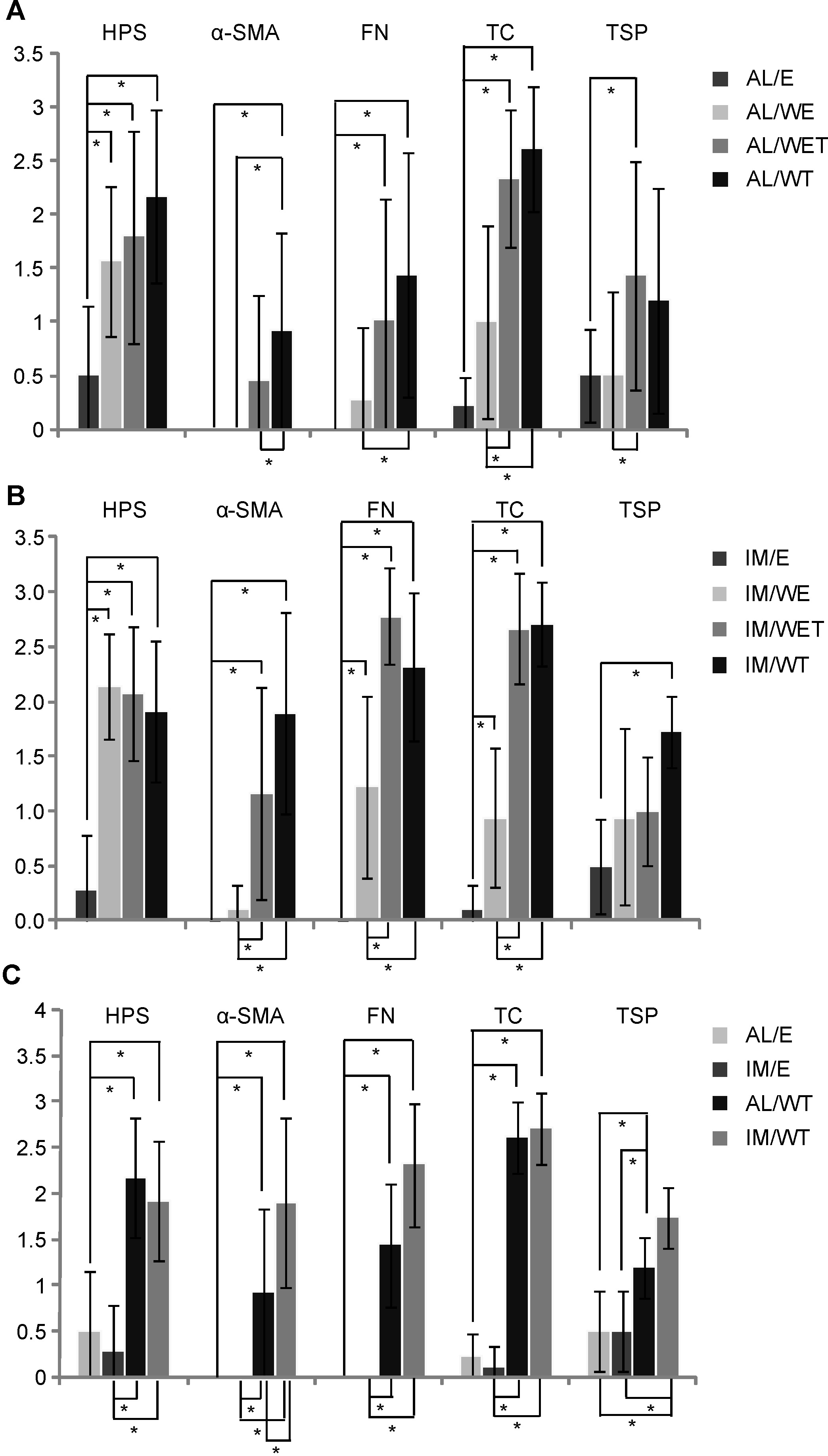 of corneas examined per group were: AL/E=3, IM/E=3, AL/WT=6; IM/WT=4. In all cases, significant differences are indicated