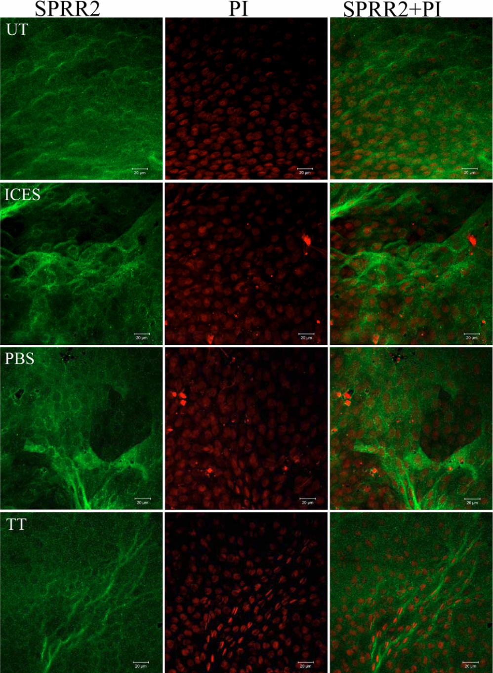 Immunofluorescent staining of whole-mounted corneas stained for SPRR-2.