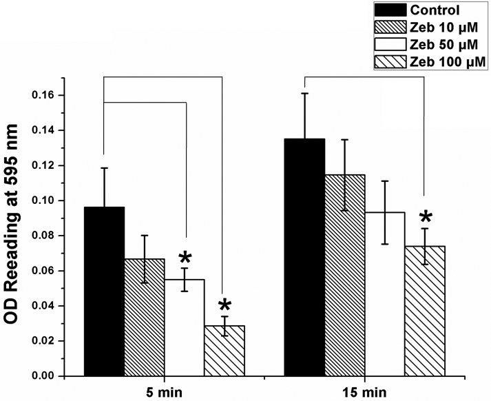 Figure 2. Zebularine decreased LECs attachment in a dose-dependent manner. LECs attachment was measured using modified MTT test. A dose-dependent
