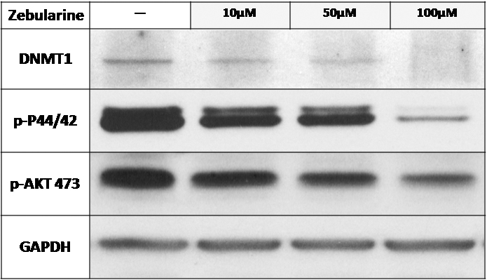 treatment was associated with a dose-dependent depletion of DNMT1 in all three doses (10, 50, and 100 μM). Zebularine inhibited