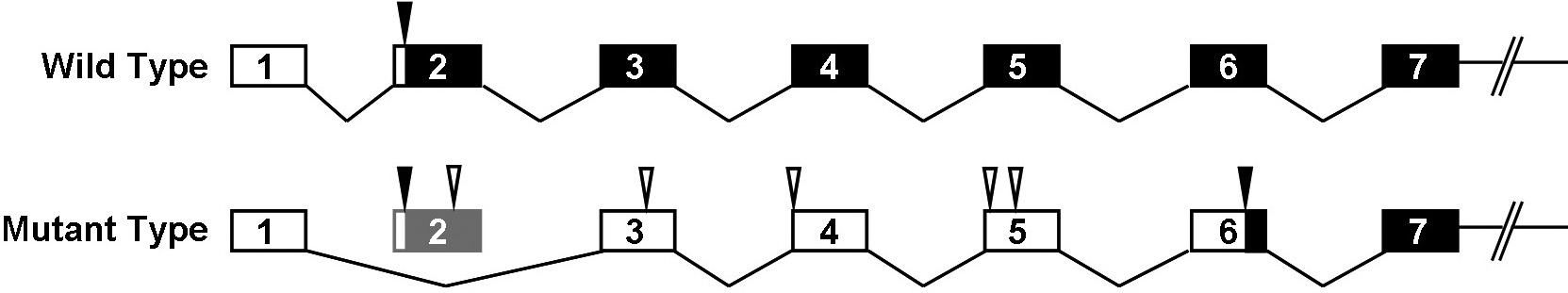 the mature mRNA of wild type and mutant type with exon 2 and the