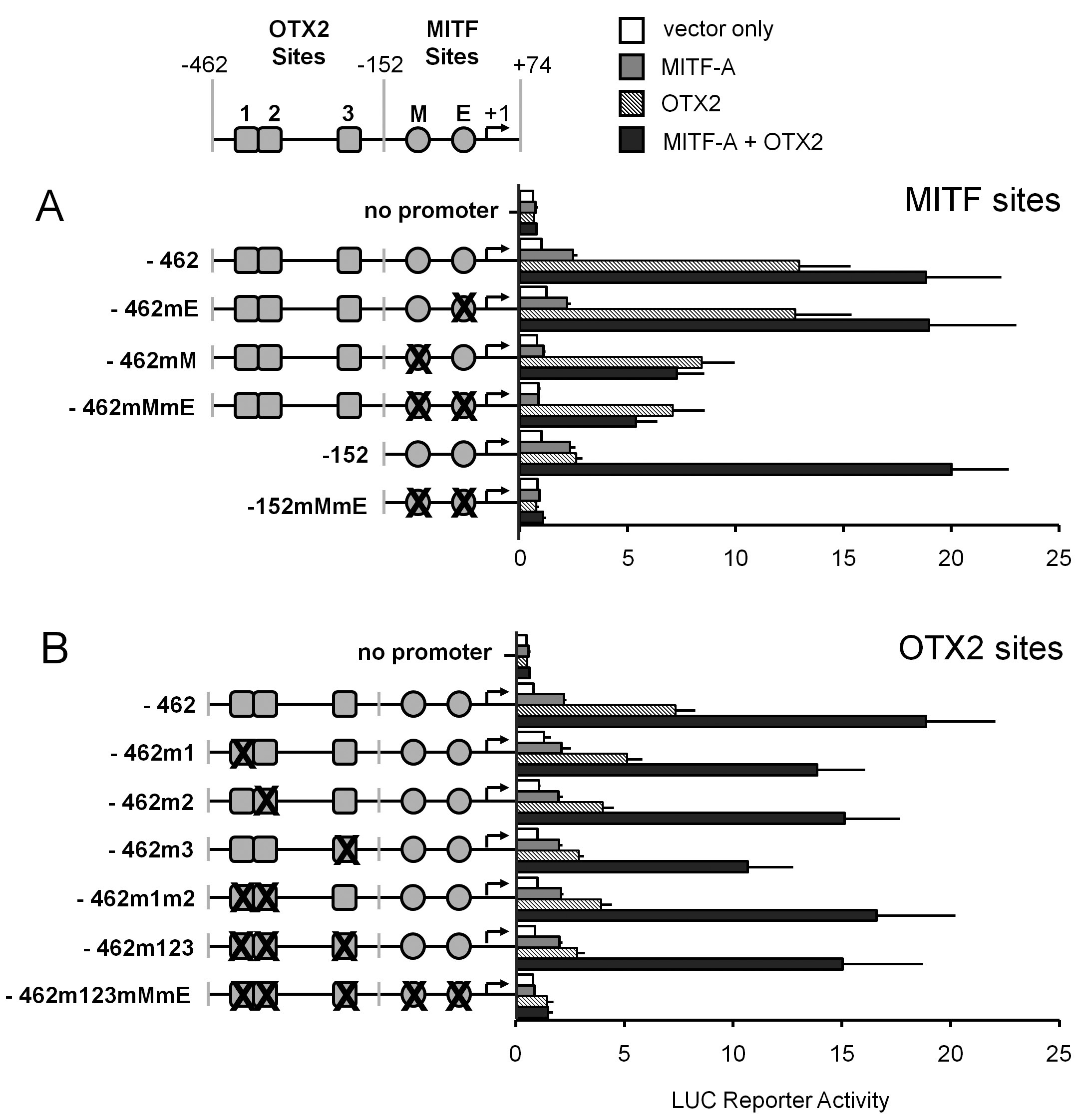 MITF sites. A: Luc-reporter constructs containing