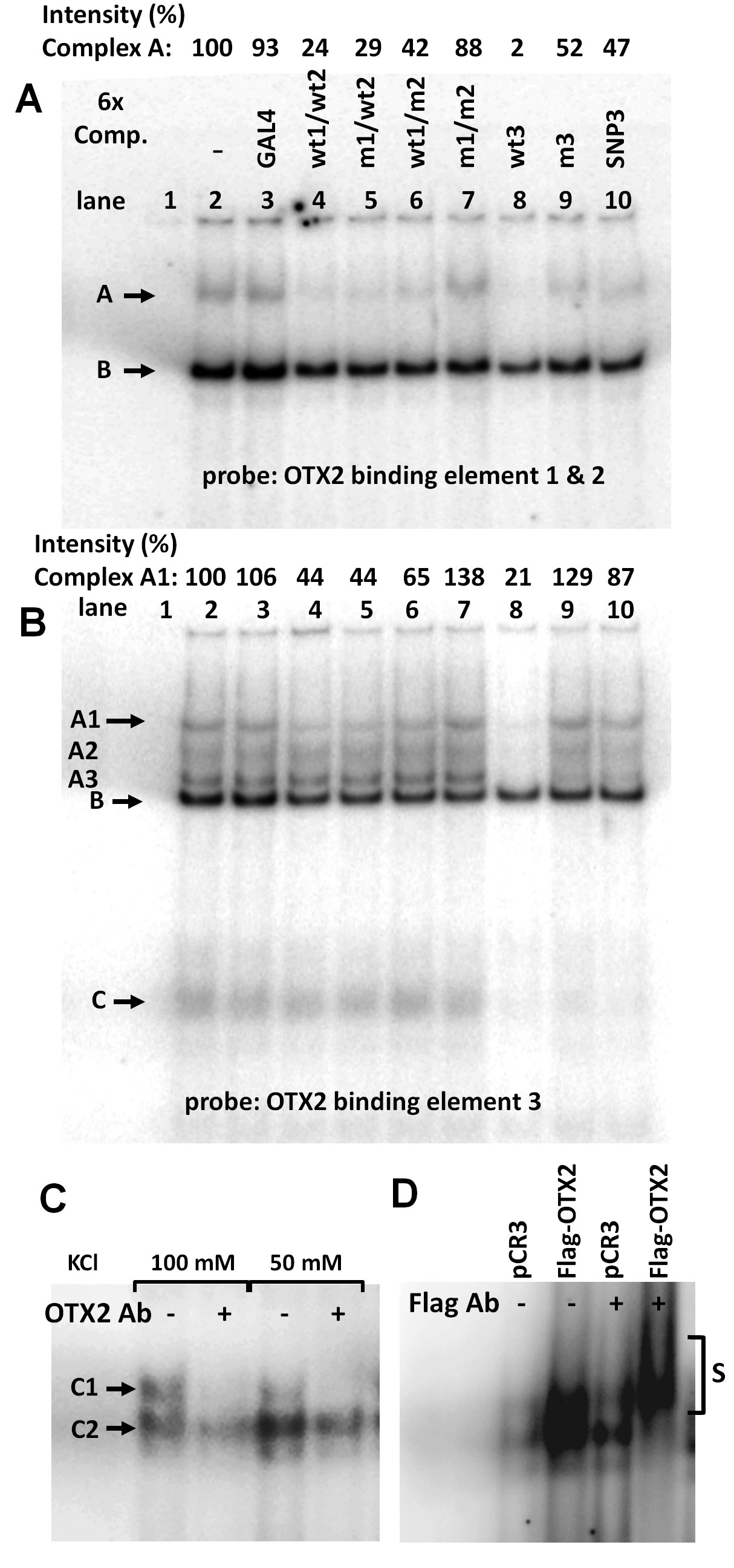 wild-type or mutated OTX2 site 3 (lanes 8–9), and SNP