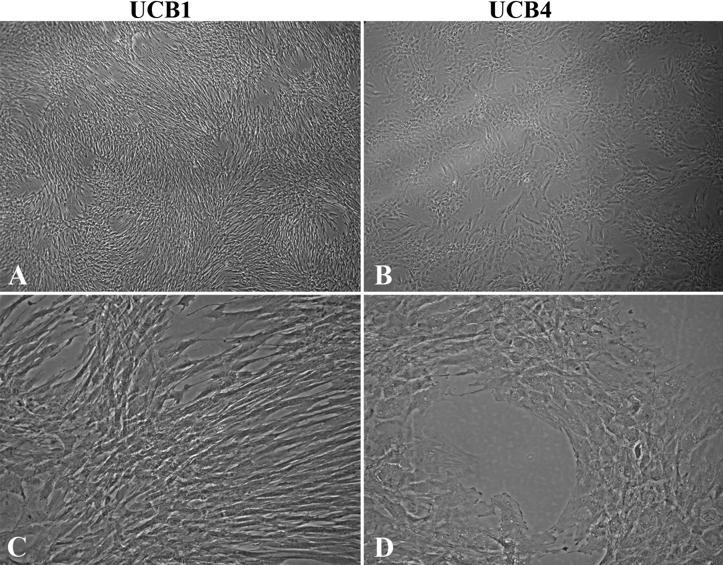 UCB1 and UCB4 MSCs. Note the more elongated shape and swirl