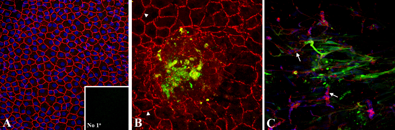 indicate the ZO1 pattern of unwounded HCEC. The image in (C)