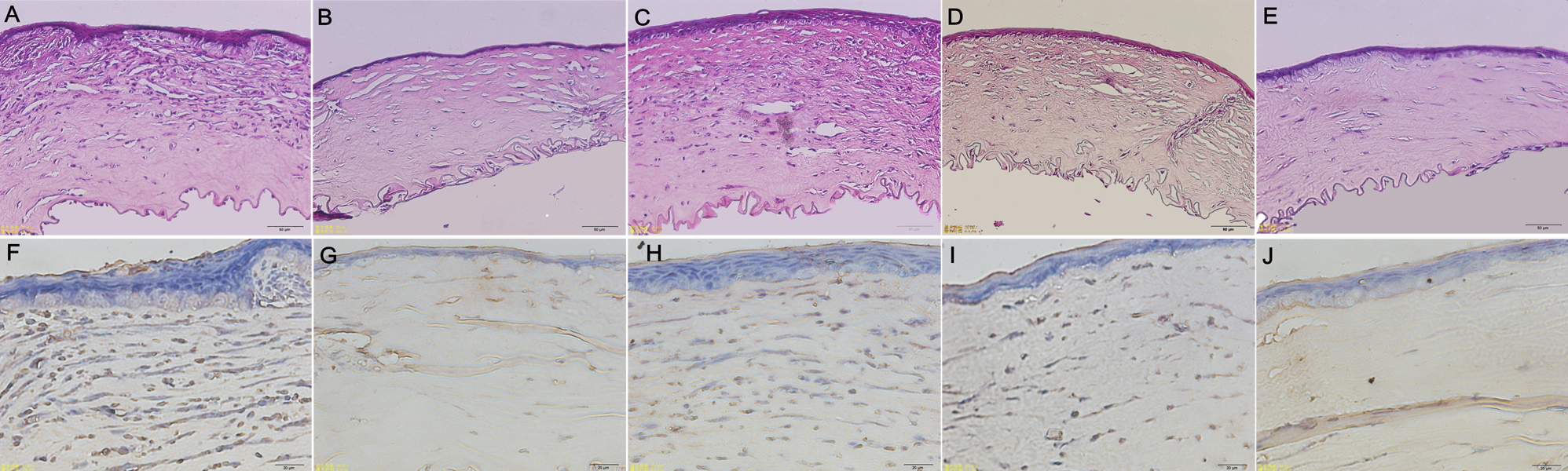 postoperative day 14 (A-E, Magnification, 20×). A: