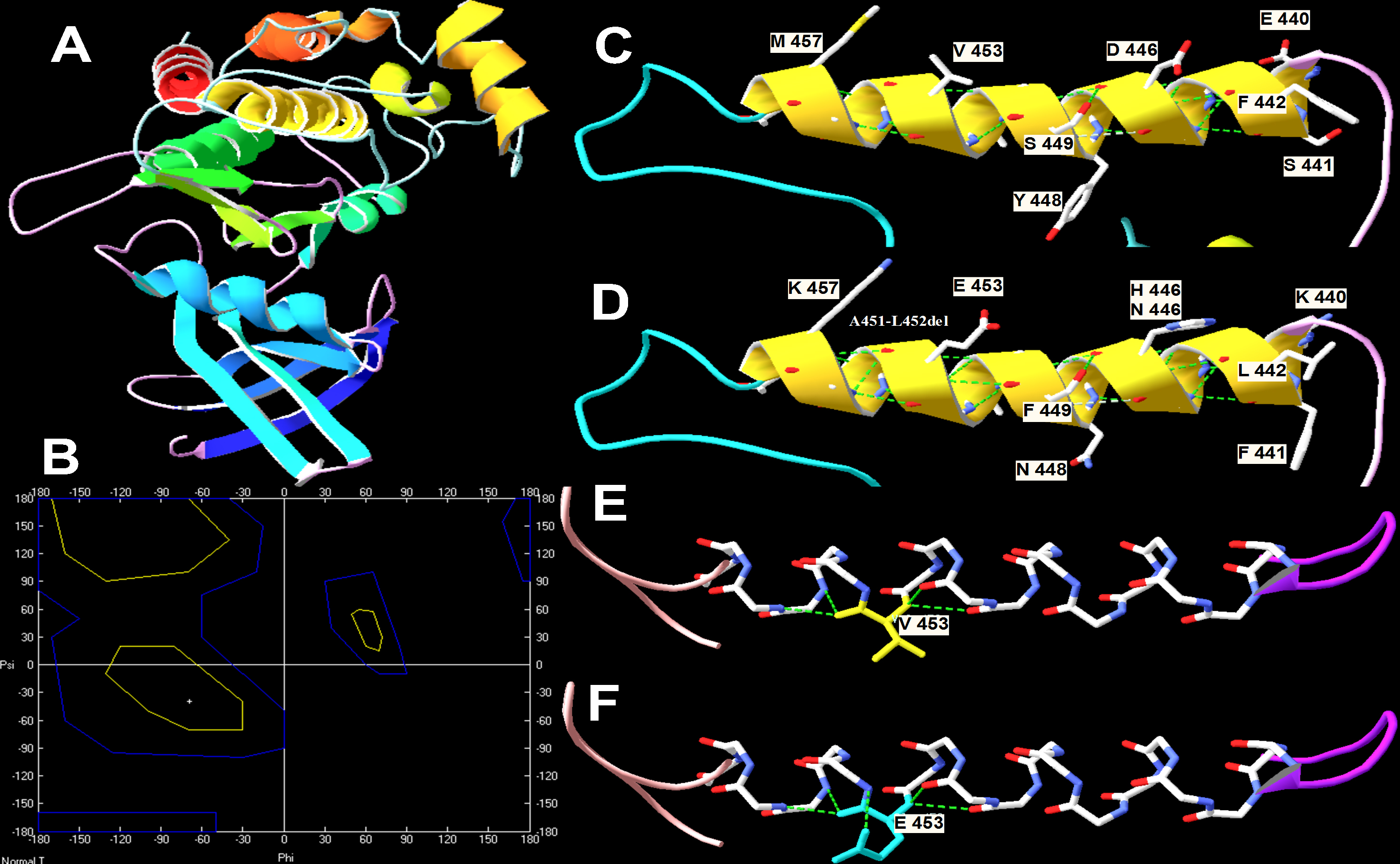 Ramachandran plot of predicted p.V453E. Phi and Psi angles