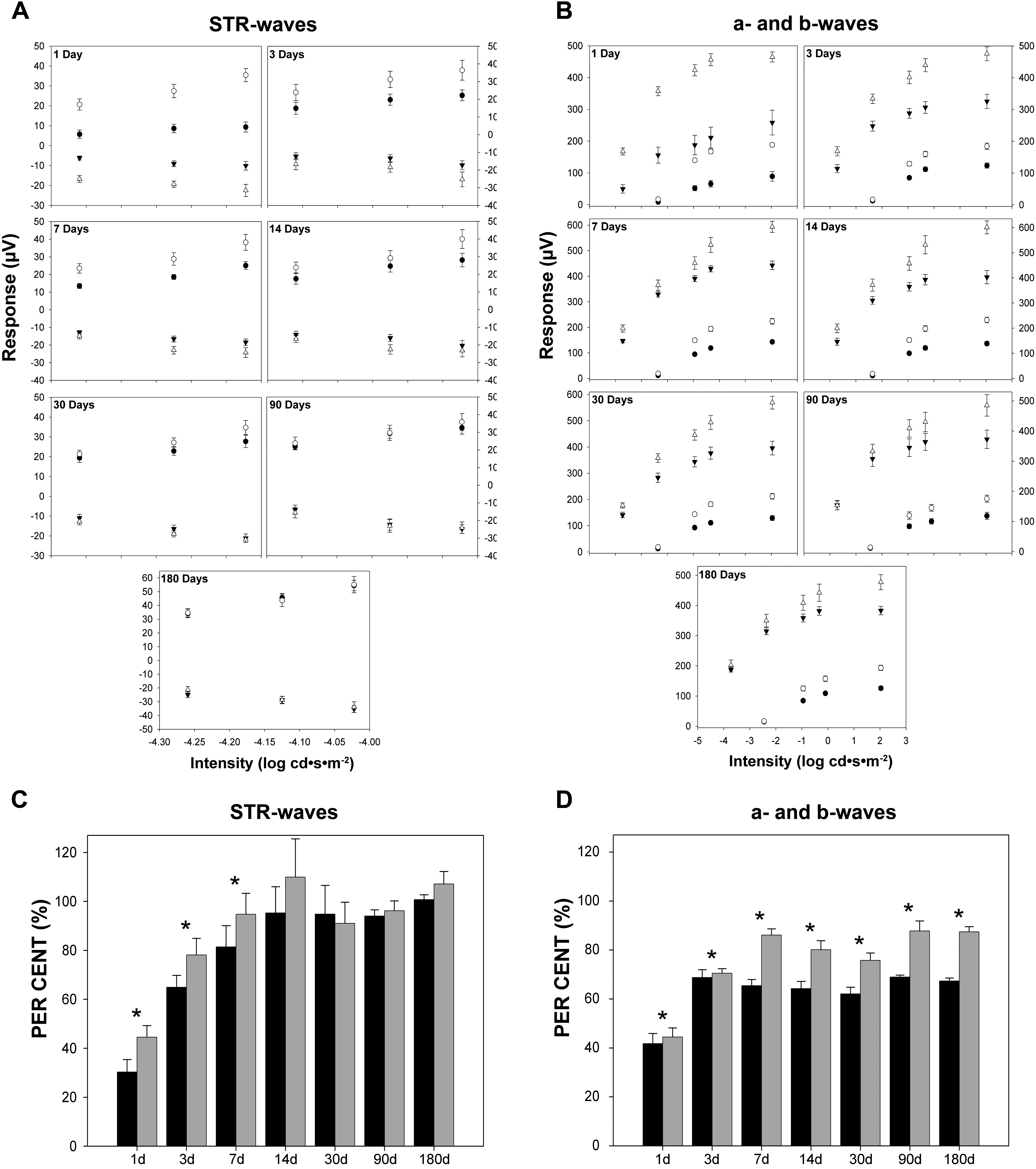 electroretinographic responses after light exposure. A: