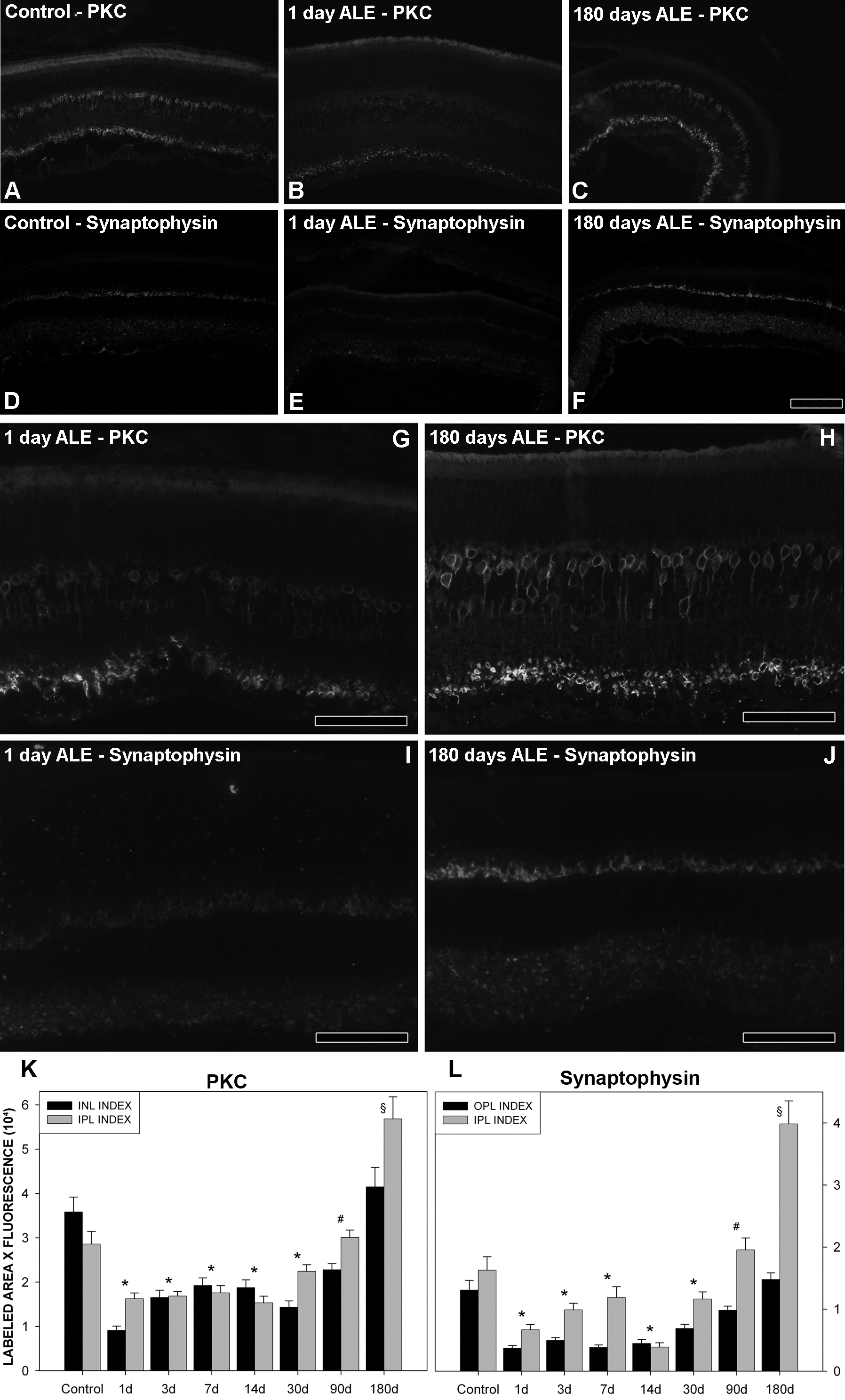 antibodies to anti-PKCα and anti-synaptophysin. A-D: