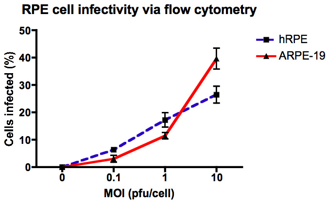 Figure 1. Quantification of West Nile virus infection in ARPE-19 and human retinal pigment epithelial (hRPE) cells using flow cytometry.