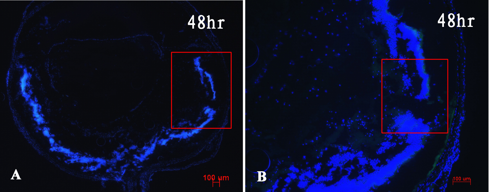 cells involved in dispase-injected eyes at 48 h time point (A,