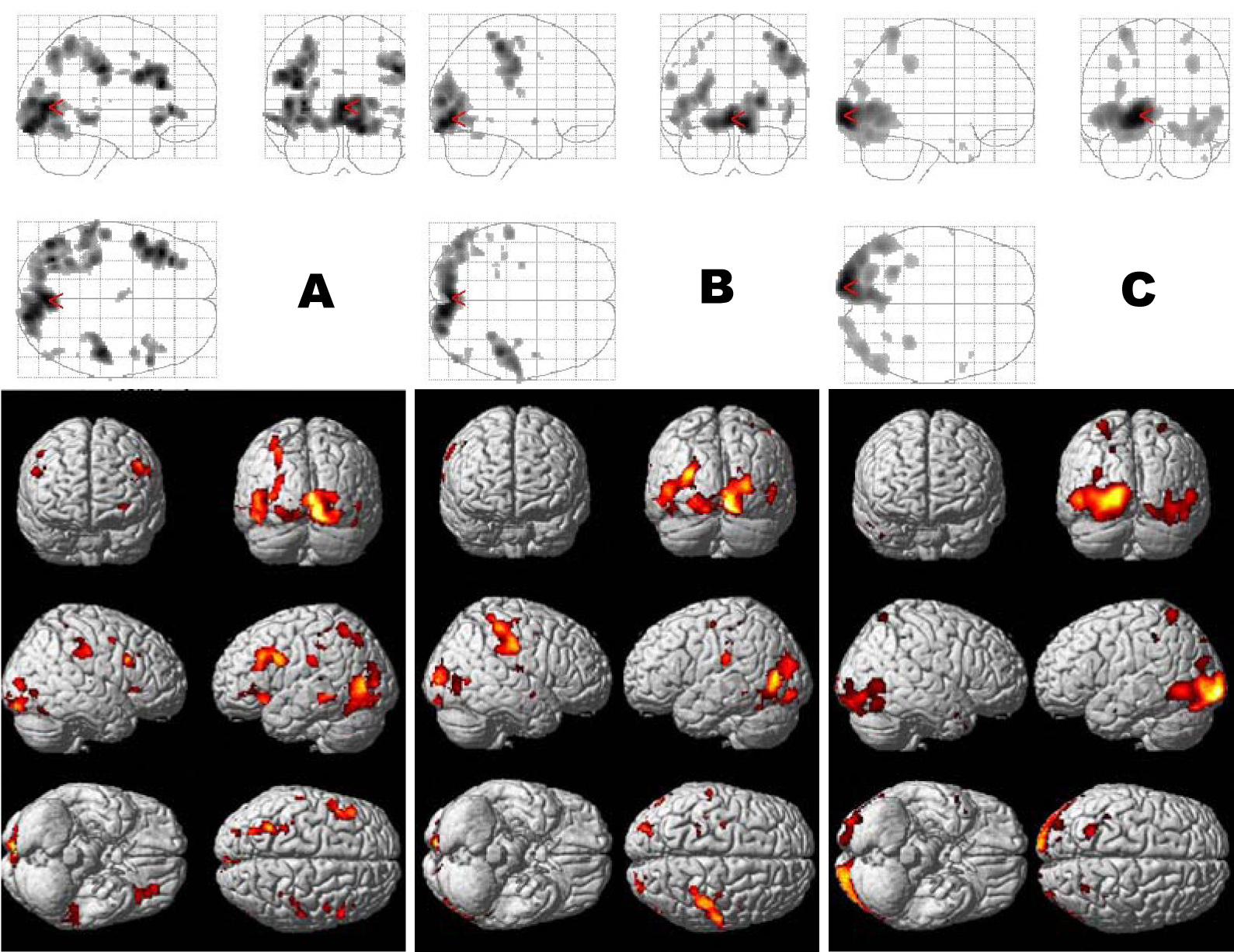 statistically significant reductions in the visual cortex of the