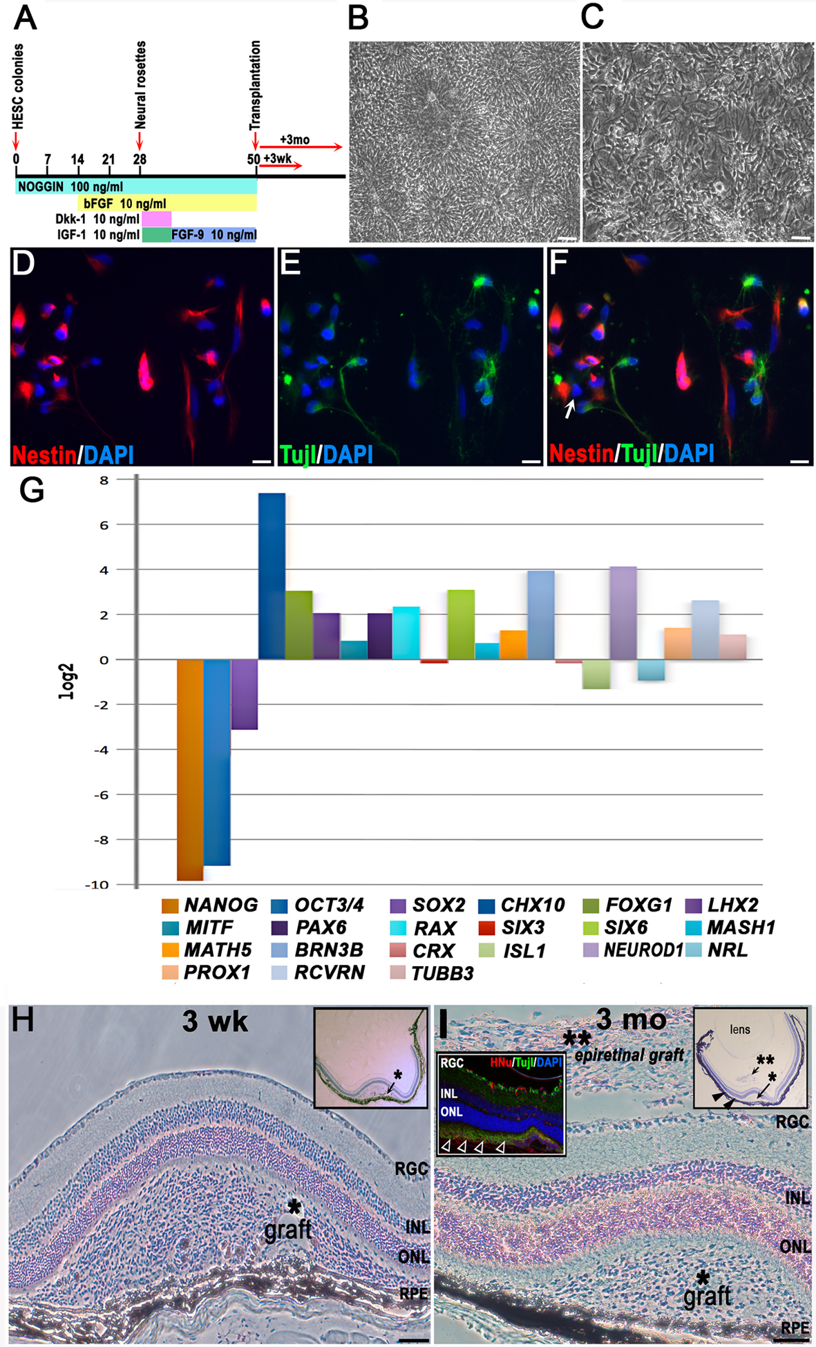 G: This is quantitative RT–PCR analysis of hESC-derived retinal progenitors prepared for transplantation at day 50 of retinal