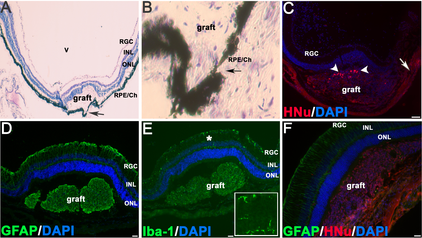 graft and in the host retina around the grafted area. The