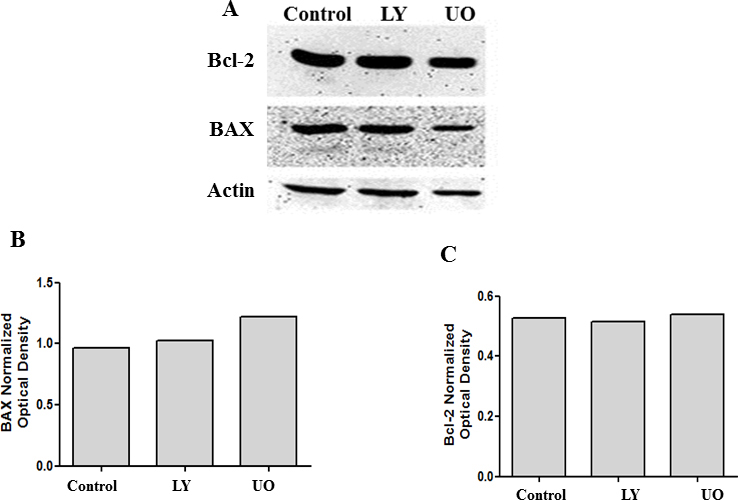 LY294002 or 10 µM of UO126 were analyzed with western blot analysis for BAX and Bcl-2 levels. There was no change in the protein
