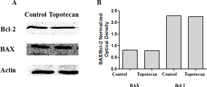 Figure 8. Inhibition of HIF-1α does not influence BAX or Bcl-2 levels. Cell lysates collected from cells treated with 500 nM topotecan