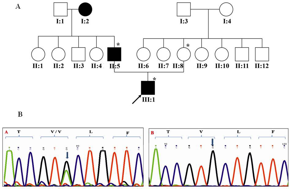who were genetically tested. B: Representative electropherograms of the individuals screened in family 39 show a silent mutation in GJA3. Heterozygous c.84G>A change was found in affected members (left panel) and a normal sequence in unaffected individuals (right