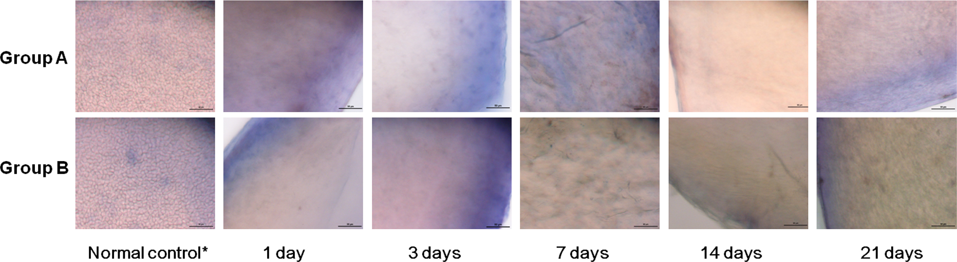 the corneal endothelial cells was observed in samples from day 1, and no evidence of cell regrowth was detected during the