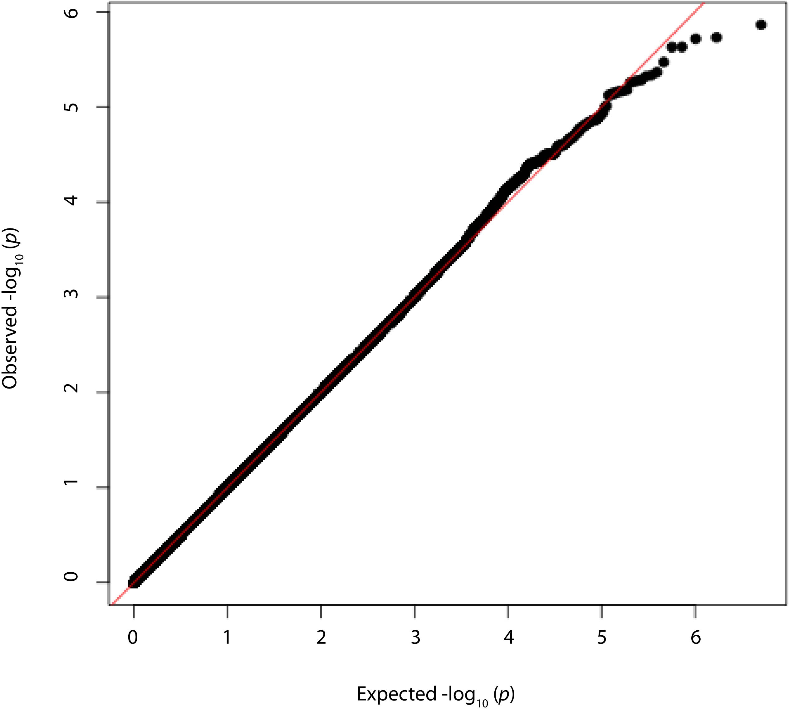 Quantile-quantile (Q-Q) plot for age and sex-adjusted genome-wide association of corneal astigmatism.