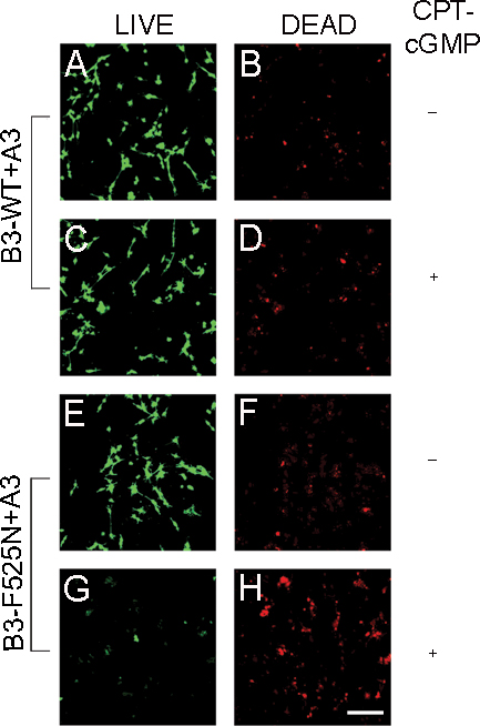 μM CPT-cGMP for 24 h. After treatment, cells were labeled according to the LIVE/DEAD assay protocol: vital cells were stained
