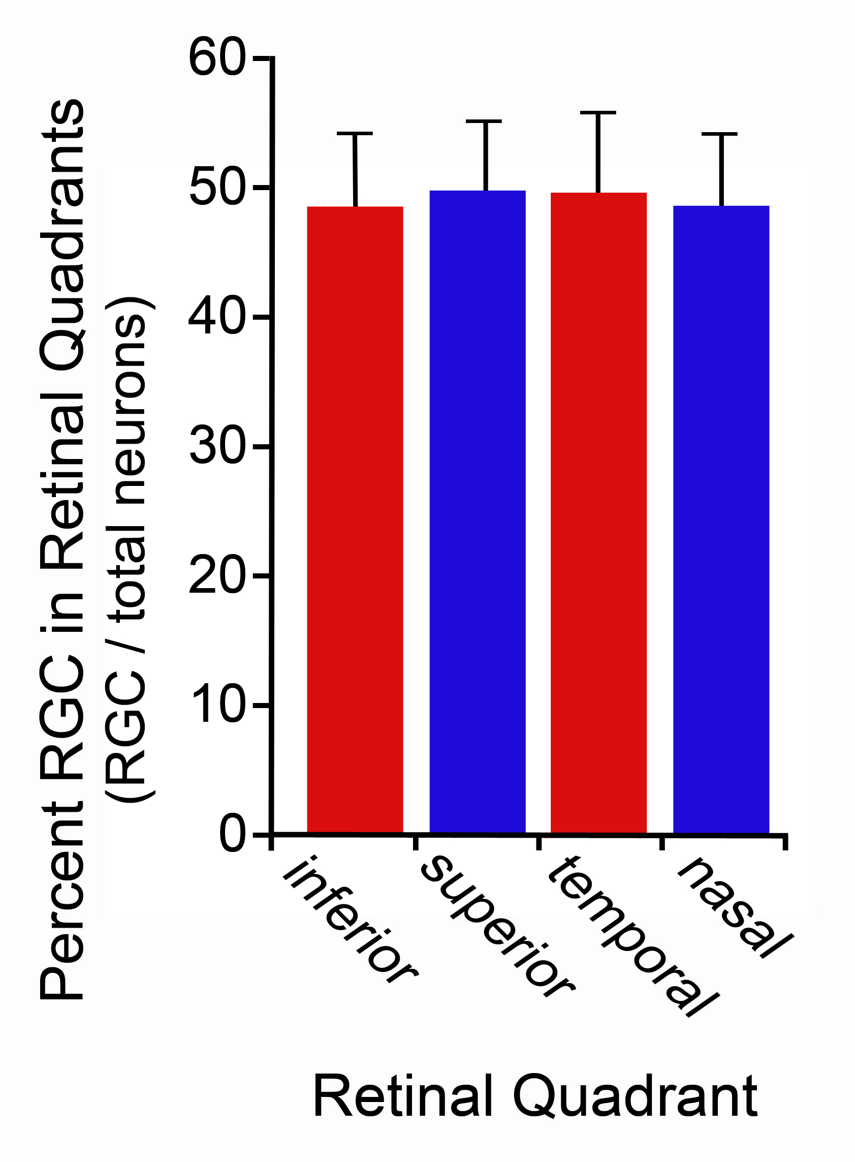 total of 11 retinas (C57BL/6 mice). The percentage of ganglion cells did not differ among different retinal quadrants (ANOVA,
