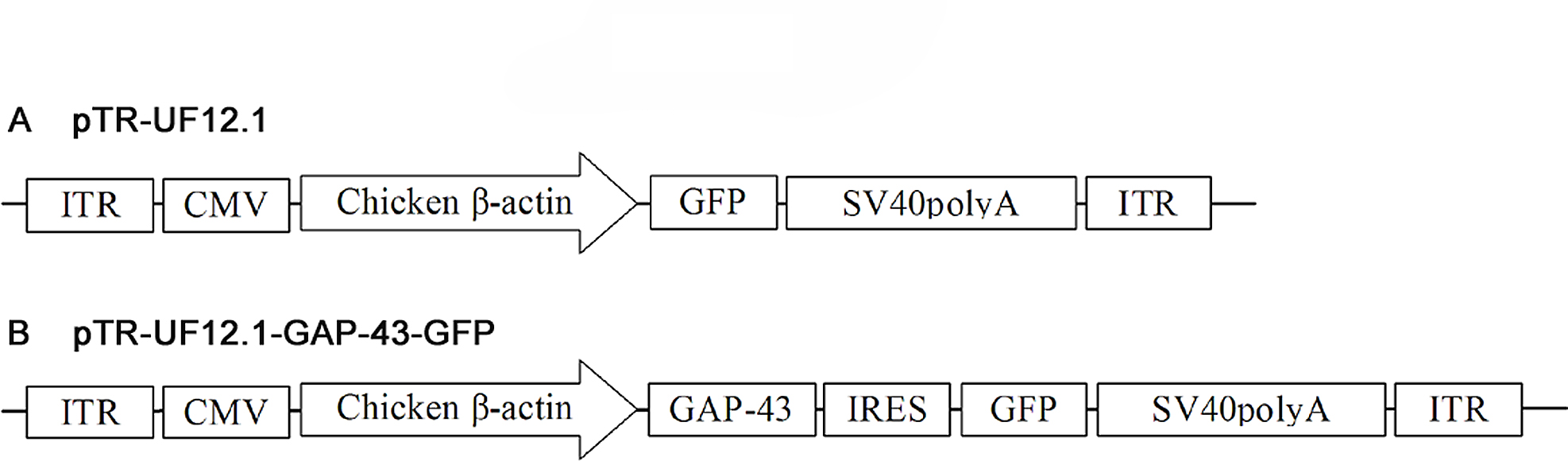 GAP-43) were under the control of the cytomegalovirus and chicken β-actin (CMV-CBA) hybrid promoter. GAP-43 plasmids contained