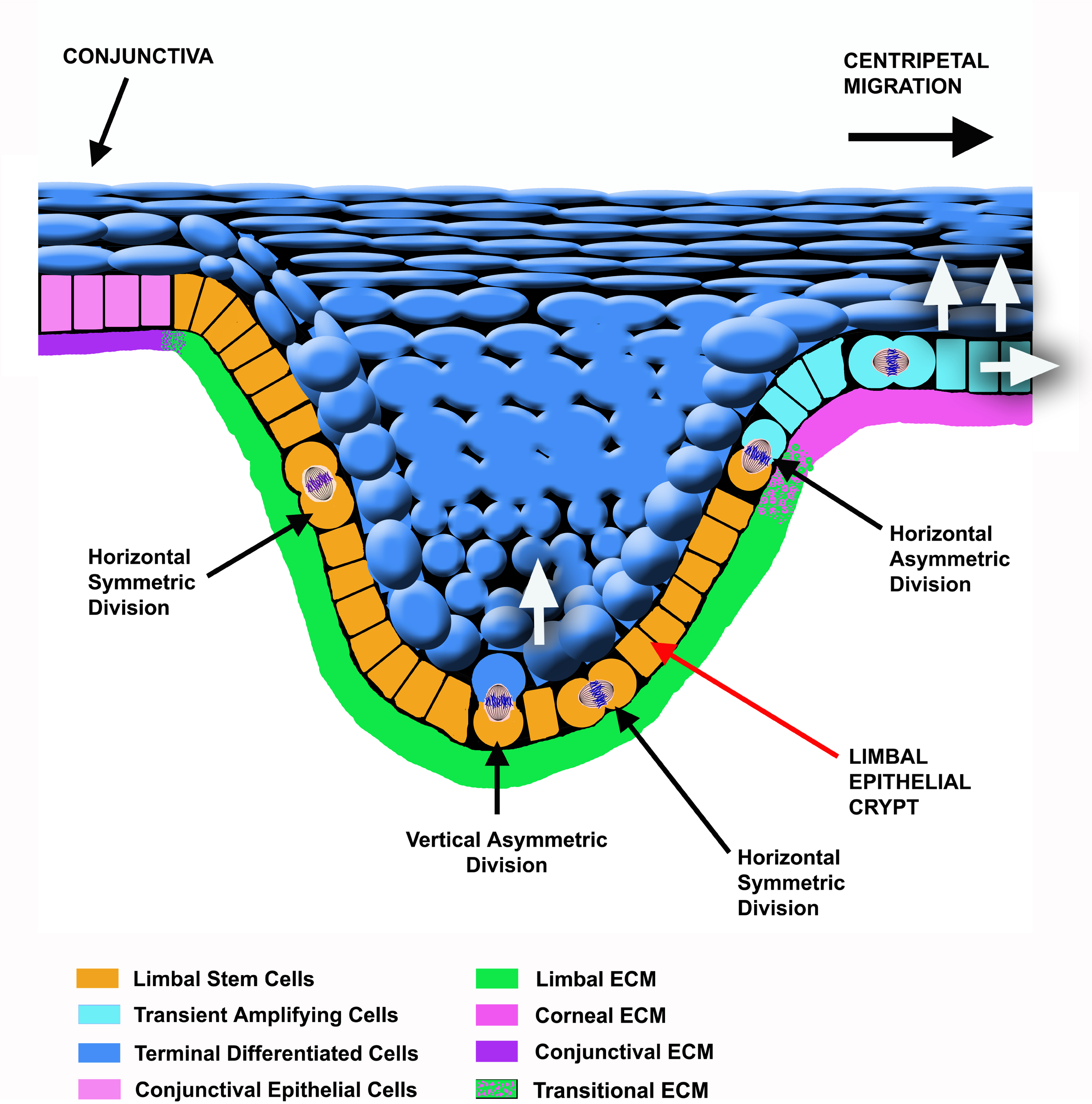 Figure 2. Schematic representation of the limbal epithelial crypt. The extracellular matrix composition and structure may regulate limbal
