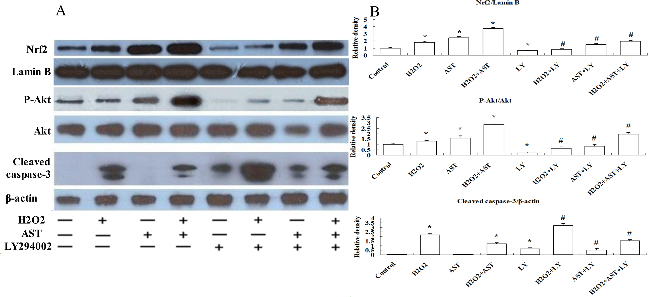 (n=6); *p<0.05 versus control; # p<0.05 versus H2O2 + AST.