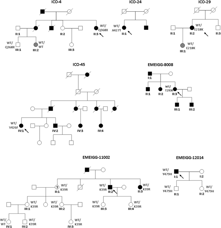 circles women. Arrows reflect the index patients. WT depicts the wild-type allele.