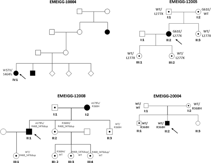 women. Arrows represent the index patients. WT depicts the wild-type allele.