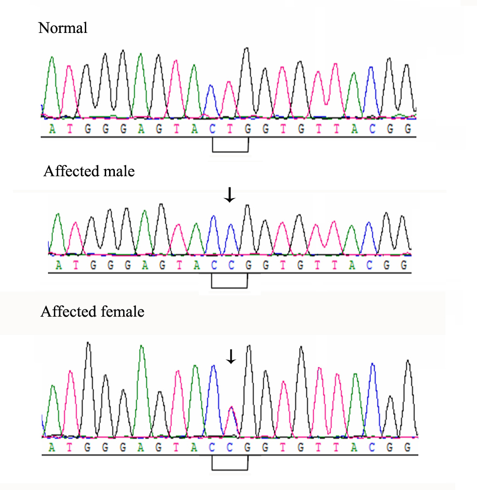 FRMD7 gene for affected and unaffected family members. The affected and unaffected family members have been shown in