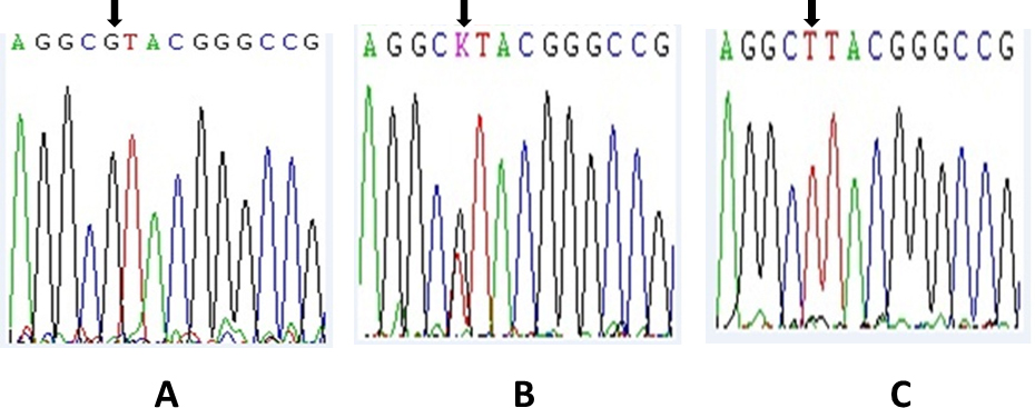Figure 1. Partial nucleotide sequence of lysyl oxidase-like 1 gene exon 1 showing single nucleotide polymorphism