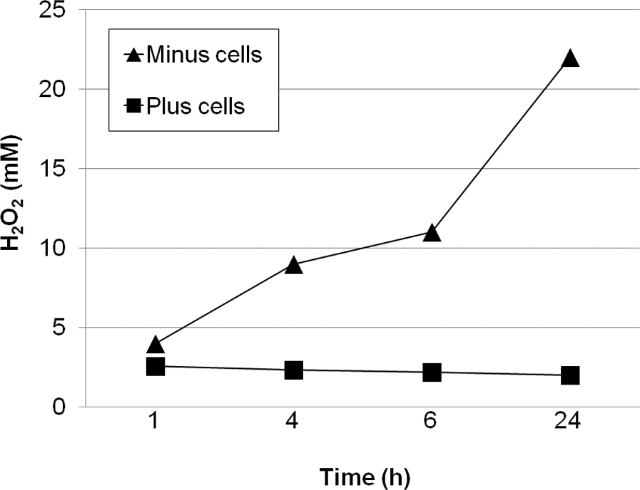Generation of hydrogen peroxide by glucose oxidase. Time course for the production of hydrogen peroxide (H
