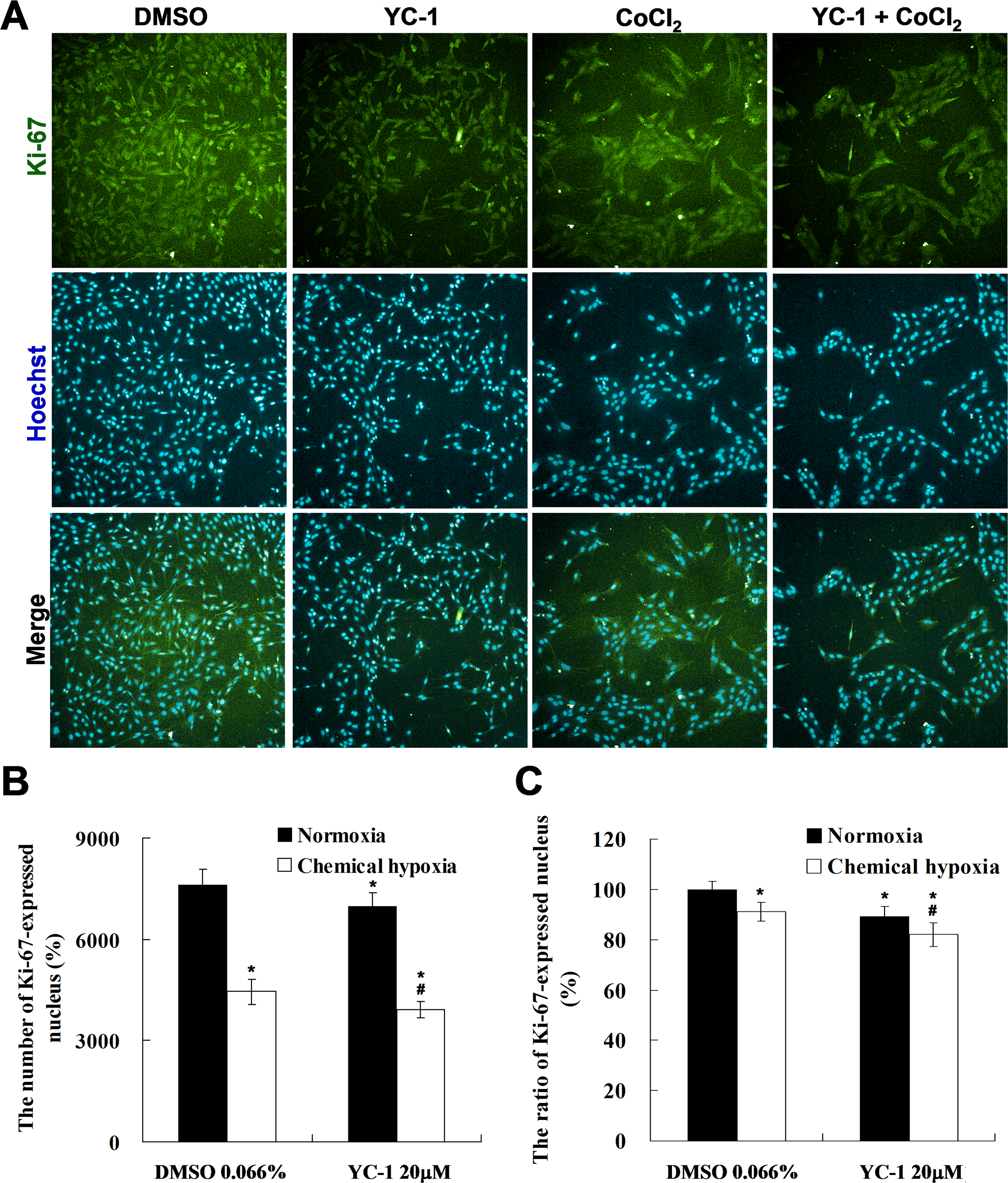200 μM CoCl2, or both YC-1 and CoCl2 for 24 h. After fixation and immunofluorescence staining, cells were detected and analyzed using a Cellomics ArrayScan VTI
