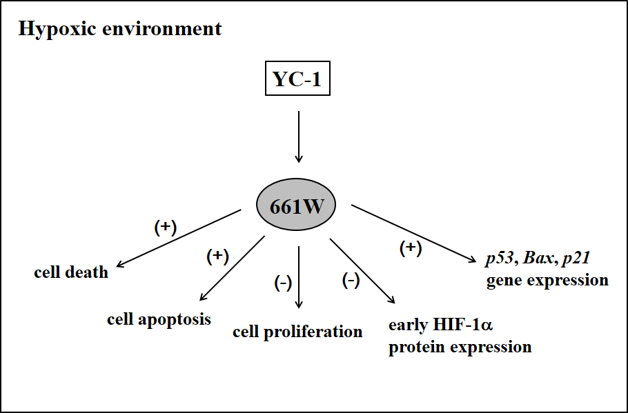 Summary of the effects of YC-1 on 661W cell viability under hypoxia.