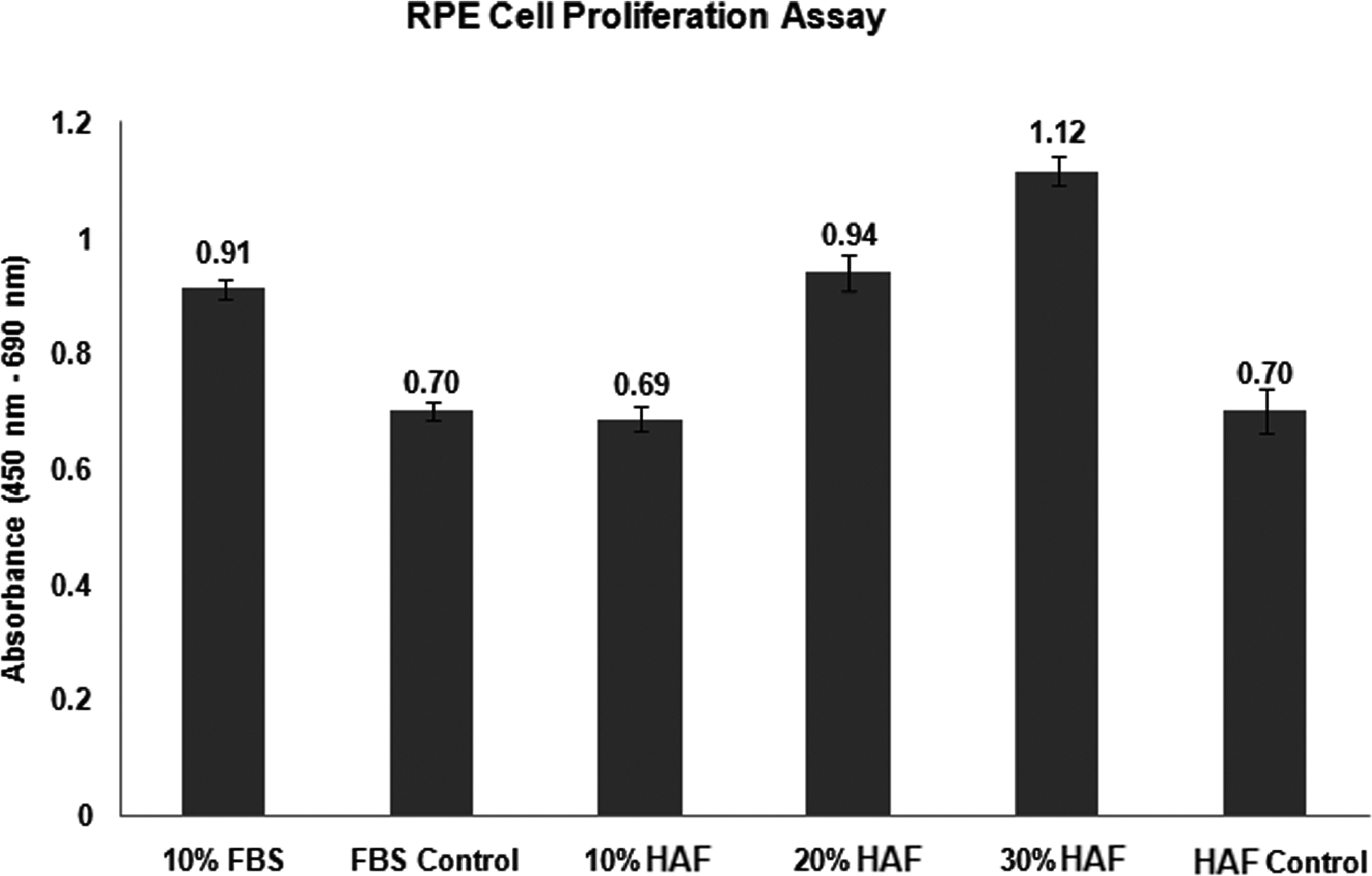 Figure 5. An enzyme-linked immunosorbent assay was used to examine the proliferation of human retinal pigment epithelium (RPE) cells.