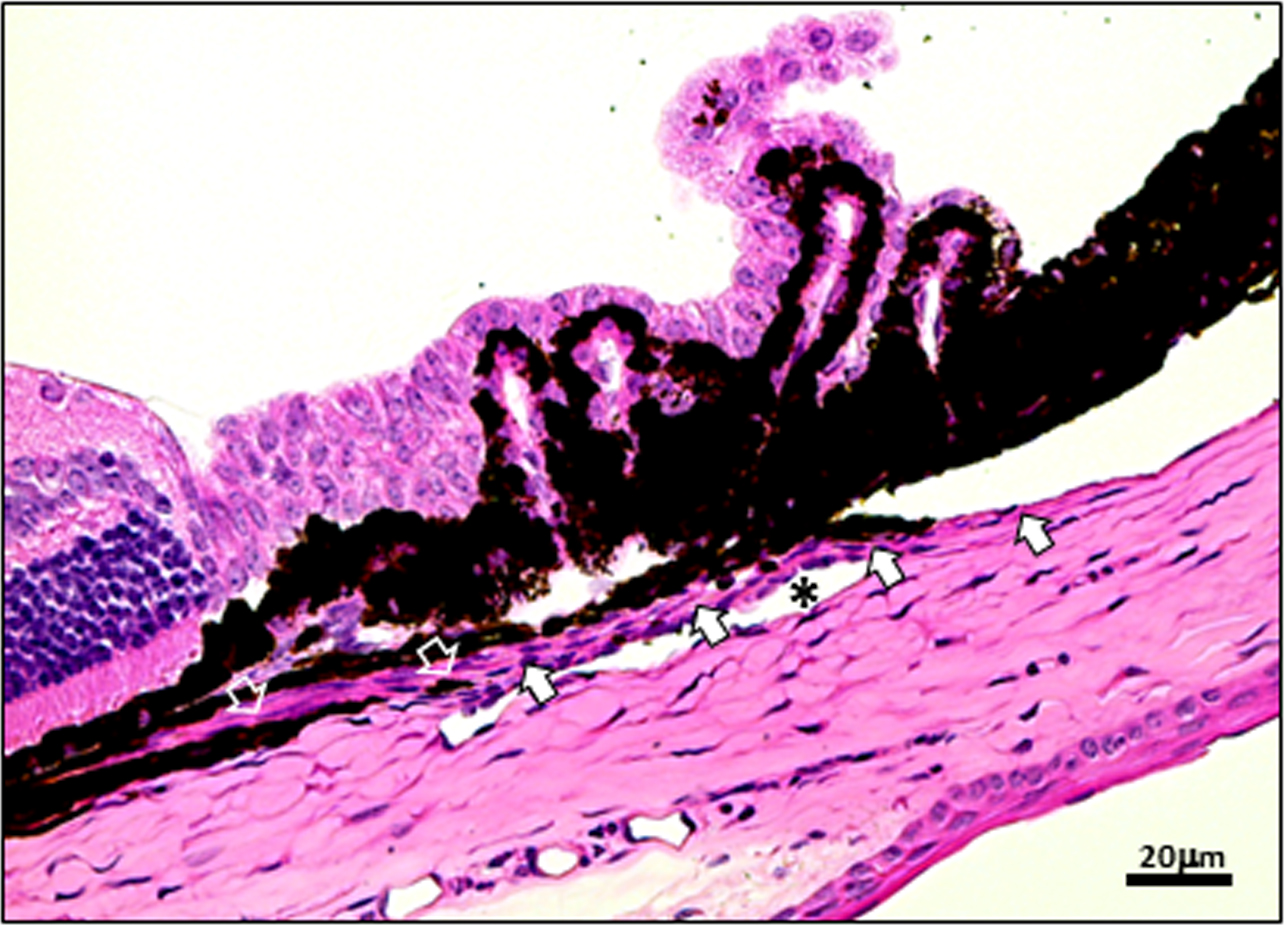 mice were embedded in formalin-fixed paraffin embedded sections then H&E stained. Opened arrows indicate ciliary muscle; closed