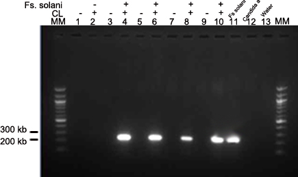 rat eye. The presence of a 250–300 bp band characteristic of Fusarium