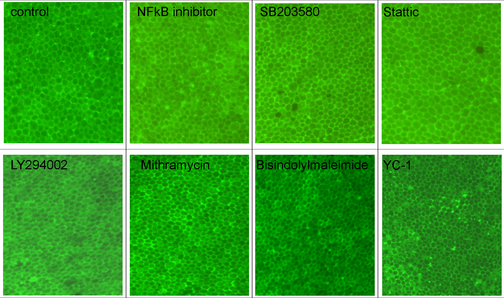 inhibitor and stained with calcein. None of the tested inhibitors displayed an effect on RPE viability in the applied concentration.