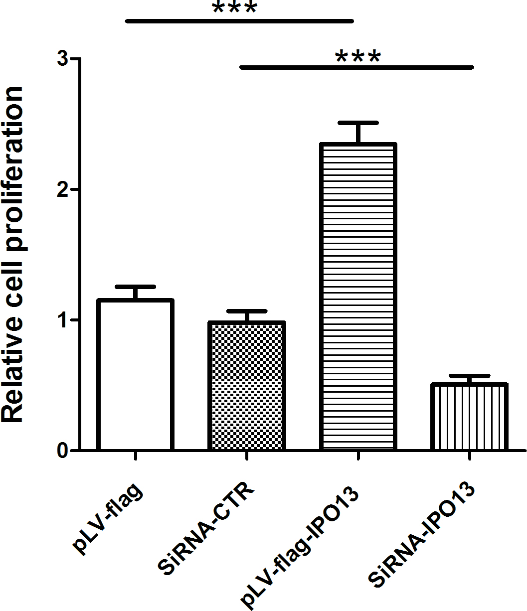 3-(4,5- dimethyl-2-thiazoyl)-2,5-di¬phenyl-2H-tetrazolium bromide (MTT) assay after transfection with pLV-flag, pLV-flag-IPO13,
