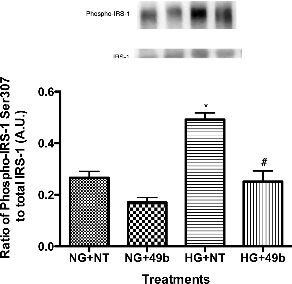 Compound 49b (50 nM). A representative blot is shown. *p<0.05 versus NG, #p<0.05 versus HG, n=4 for all groups. Data are mean±SEM.