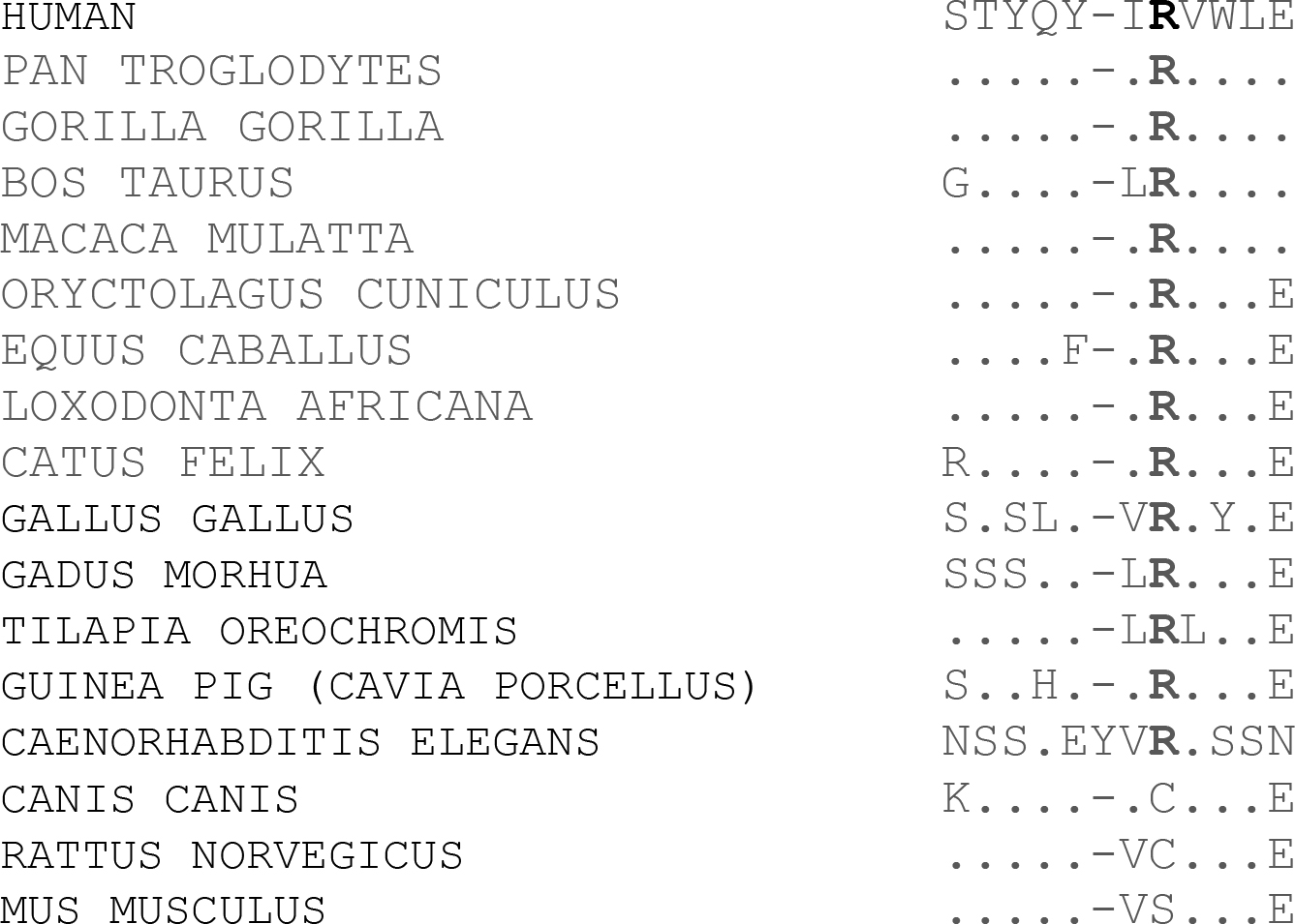 orthologs. Human R764 is in bold. Conserved amino acid are replaced by a dot.