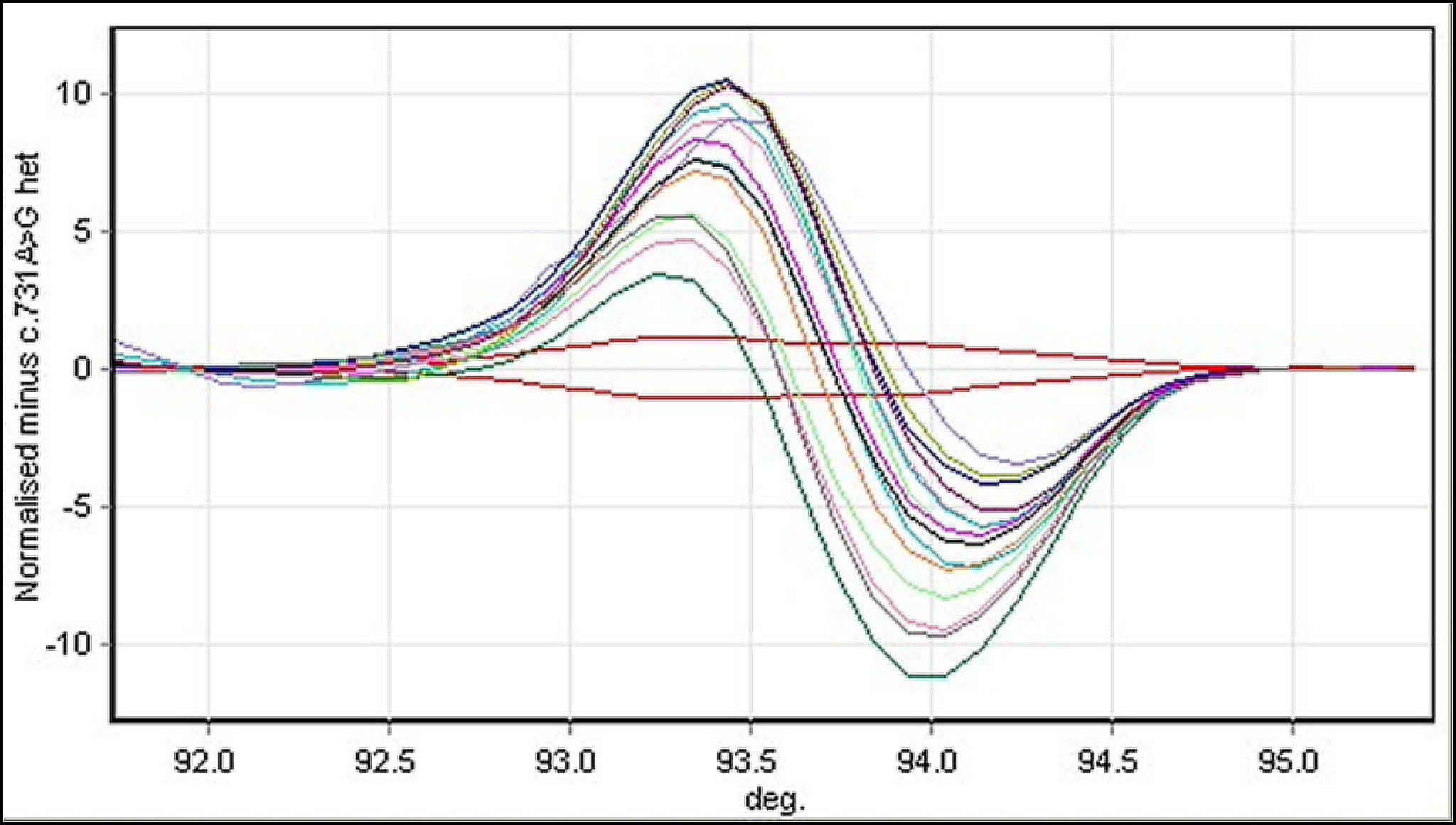 Figure 4. High-resolution melting analysis normalized difference graph of screening in the control population (200 alleles) for the