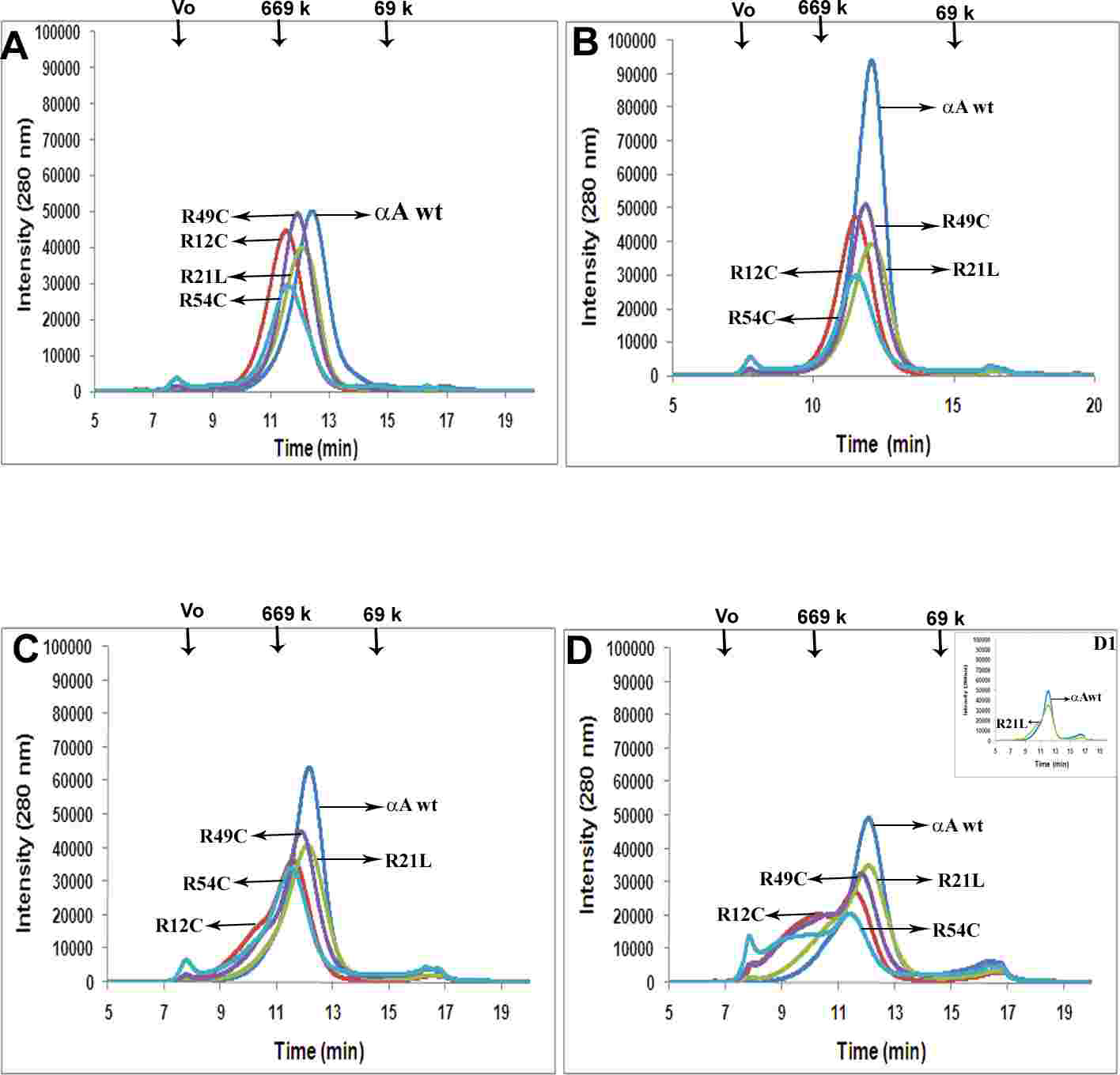 mutants. The high-performance liquid chromatography (HPLC)–size exclusion chromatographic (SEC) analysis of αA-crystallin