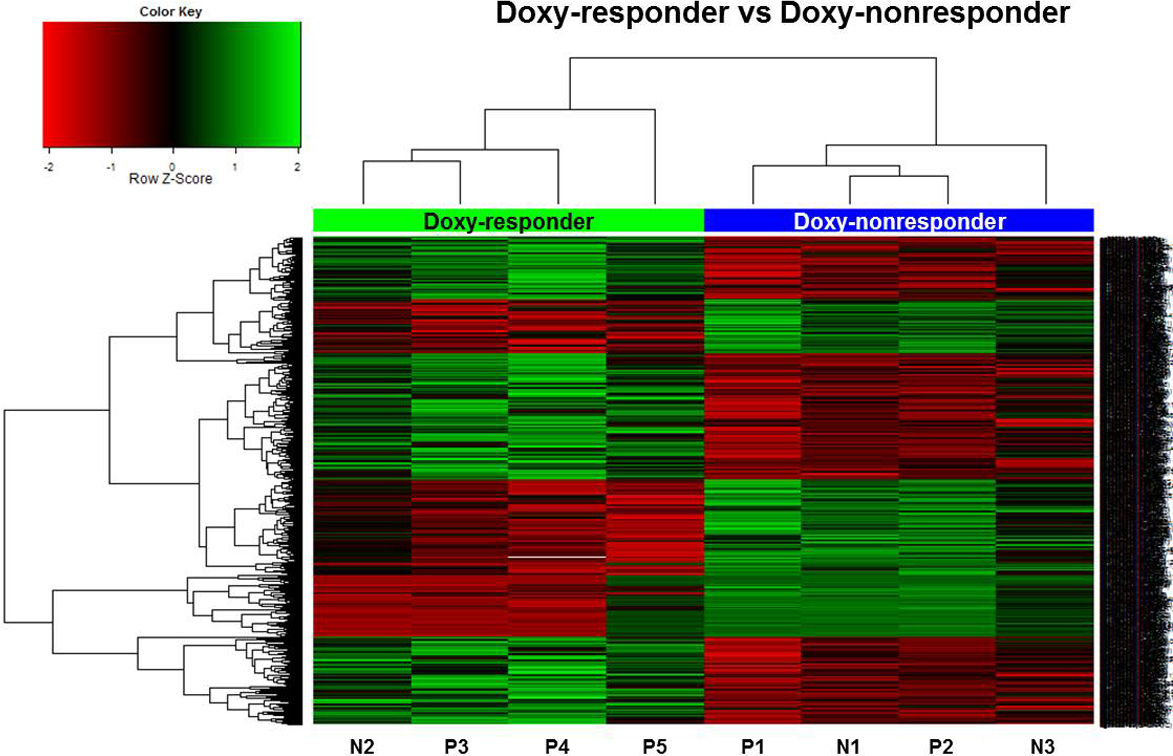 (n=4) and doxy-nonresponders (n=4). The methylation levels at the 778 CpG sites were used for hierarchical clustering. All